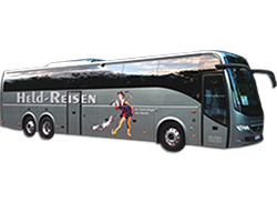 Bei allen Bussen handelt es sich um moderne 3-4 Sterne Fernreisebusse, ausgestattet mit verstellbaren Sesseln, Bord-WC, größtenteils Video, CD-Player und Telefon. Um möglichst viele Teilnehmer anzusprechen, bieten wir verschiedene Busrouten an.